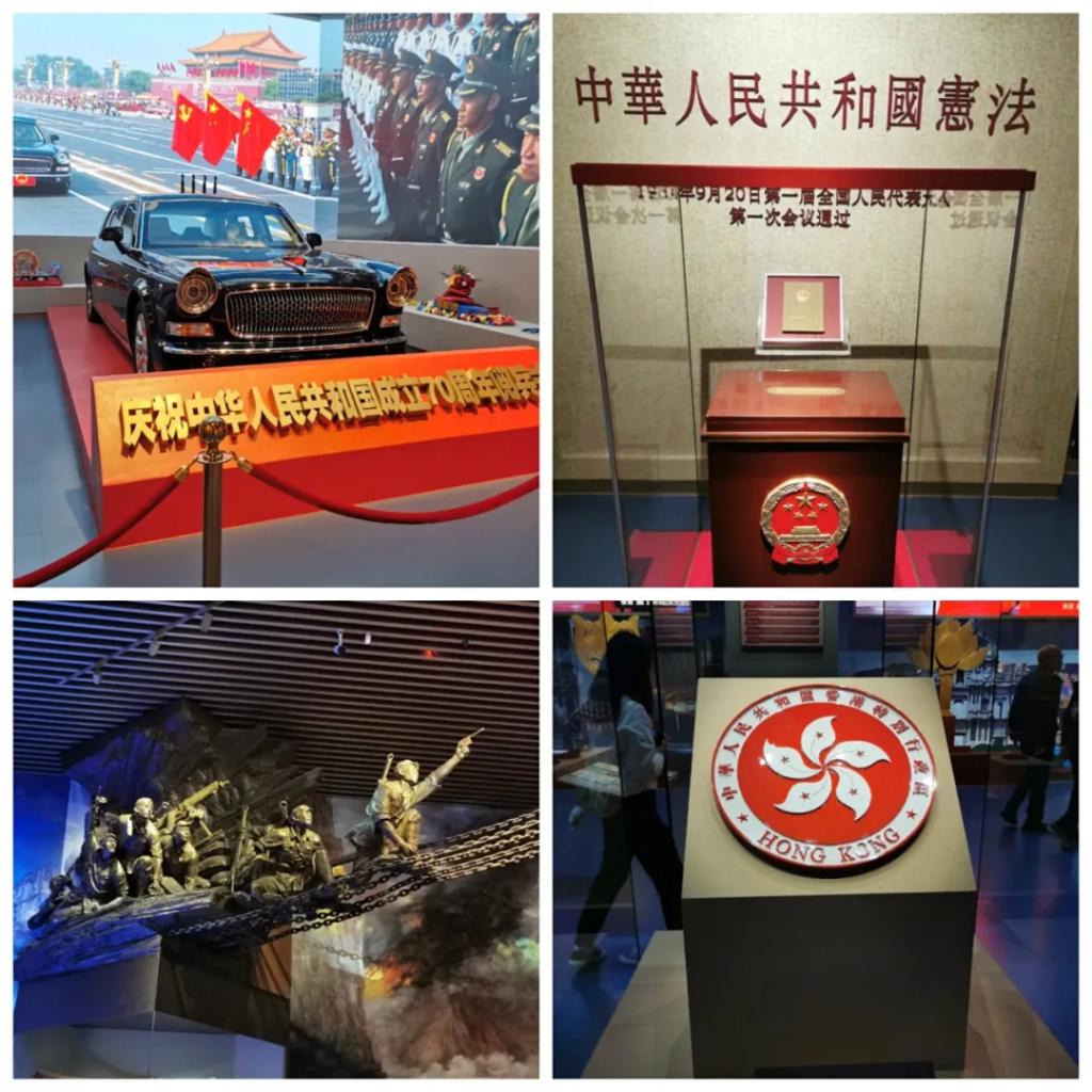 沿着参观的路线,大家切身体会到“初心”和“使命”贯穿了全过程,渗透到各方面。展览馆外四座大型雕塑讲述了中国共产党一百年来为人民谋幸福,为民族谋复兴的奋斗历程;馆内从序厅到主题展区,一件件实物,一幅幅相片,再现了我们党从上海兴业路出发,到今日成长为世界第一大党的创业历程;旗帜墙上飘扬的军旗,展厅里逼真的模型,诉说着我们党争取民族独立和人民解放的战斗历程。