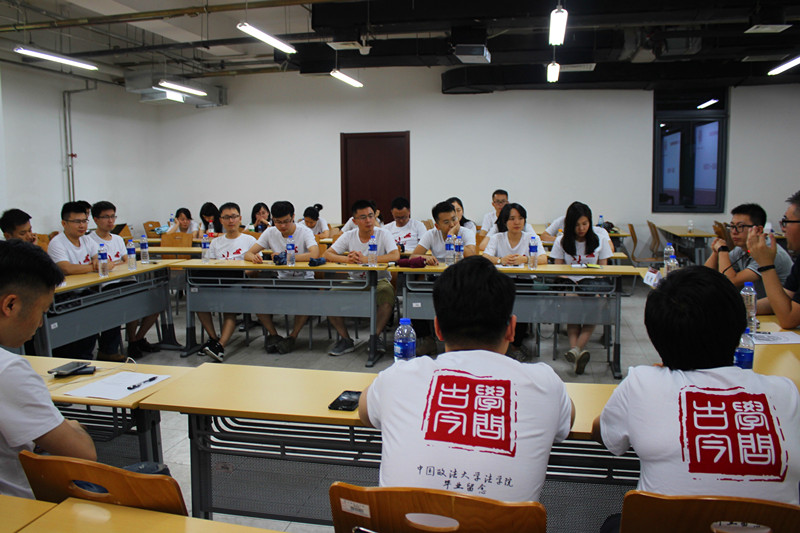文化衫的毕业生齐聚一堂,分享着毕业的喜悦与离别的不舍。陈维厚叮嘱即将走向新的人生旅程的毕业生,做好人生规划,并为之奋斗;保持良好心态,学会自我调节和减压。刘澍表达了对同学们的深深不舍,告诫大家要懂得珍惜和感恩。要坚守自己的底线和原则,保持纯真朴素的内心。老师发言结束,活动进入毕业生签名环节。签名引发大家对过去三年美好时光的回想,毕业生们都表示,感谢身边同学的陪伴,感谢老师的帮助,感谢在法大的三年。自由发言时间,大家敞开心扉,纷纷表达着心中的不舍,祝愿每个同学心中的理想能够早日实现。