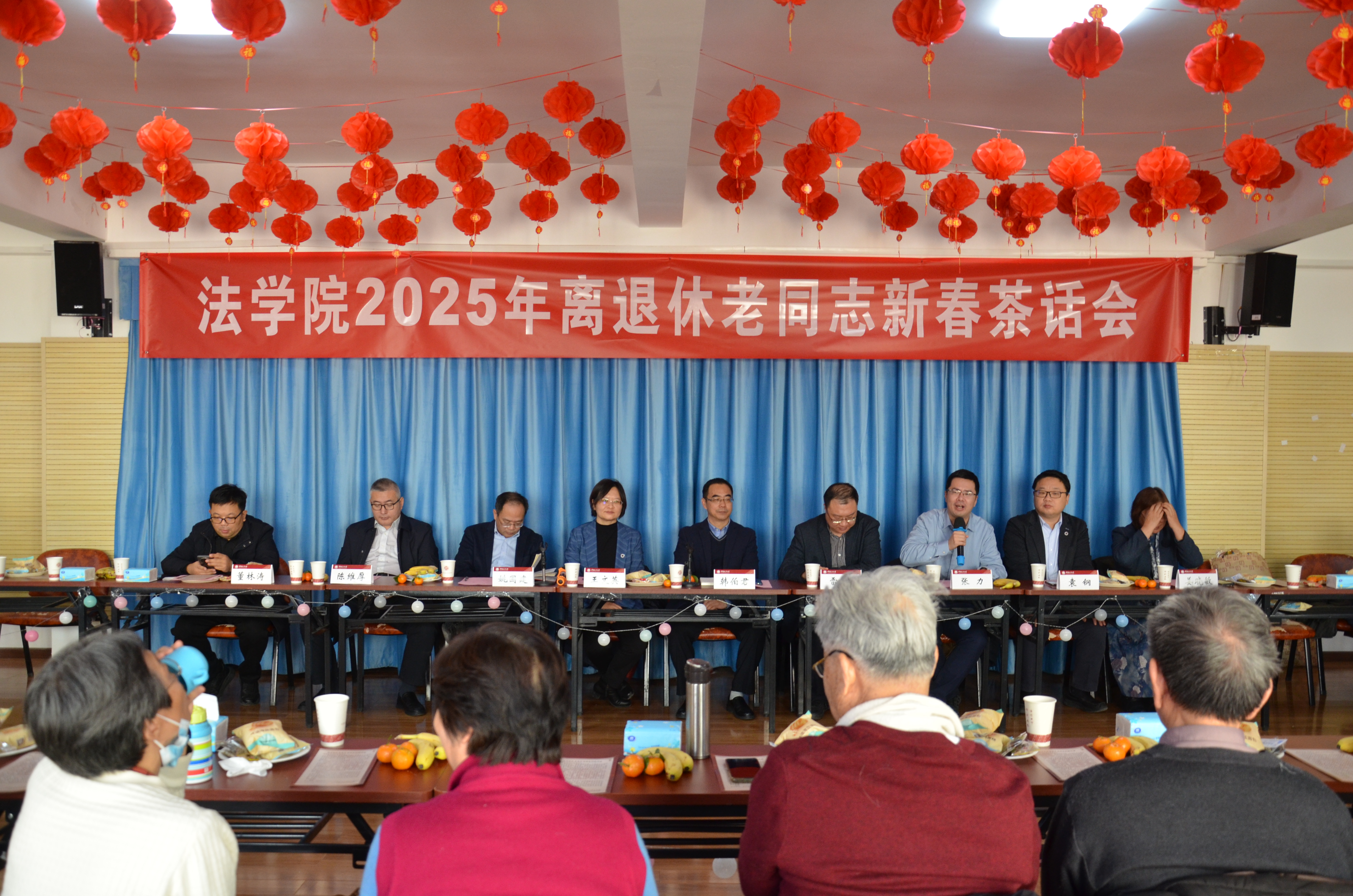 法律史研究所支部书记姜晓敏和法律职业伦理研究所副所长董林涛依次发言,向各位老同志介绍了相关学科的最新动态和教学科研成果,表示要与各位前辈多交流学习。