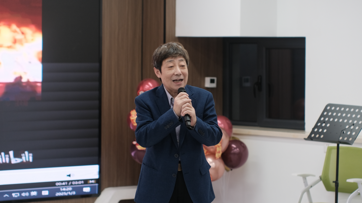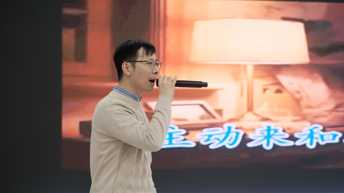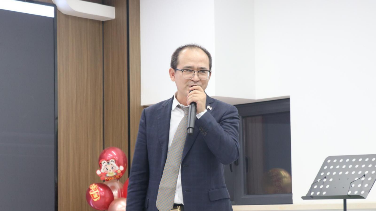 雷磊作开场致辞。他代表学院向过去一年辛勤工作的老师们表示衷心感谢,同时向全院教职工送上美好新年祝福。
