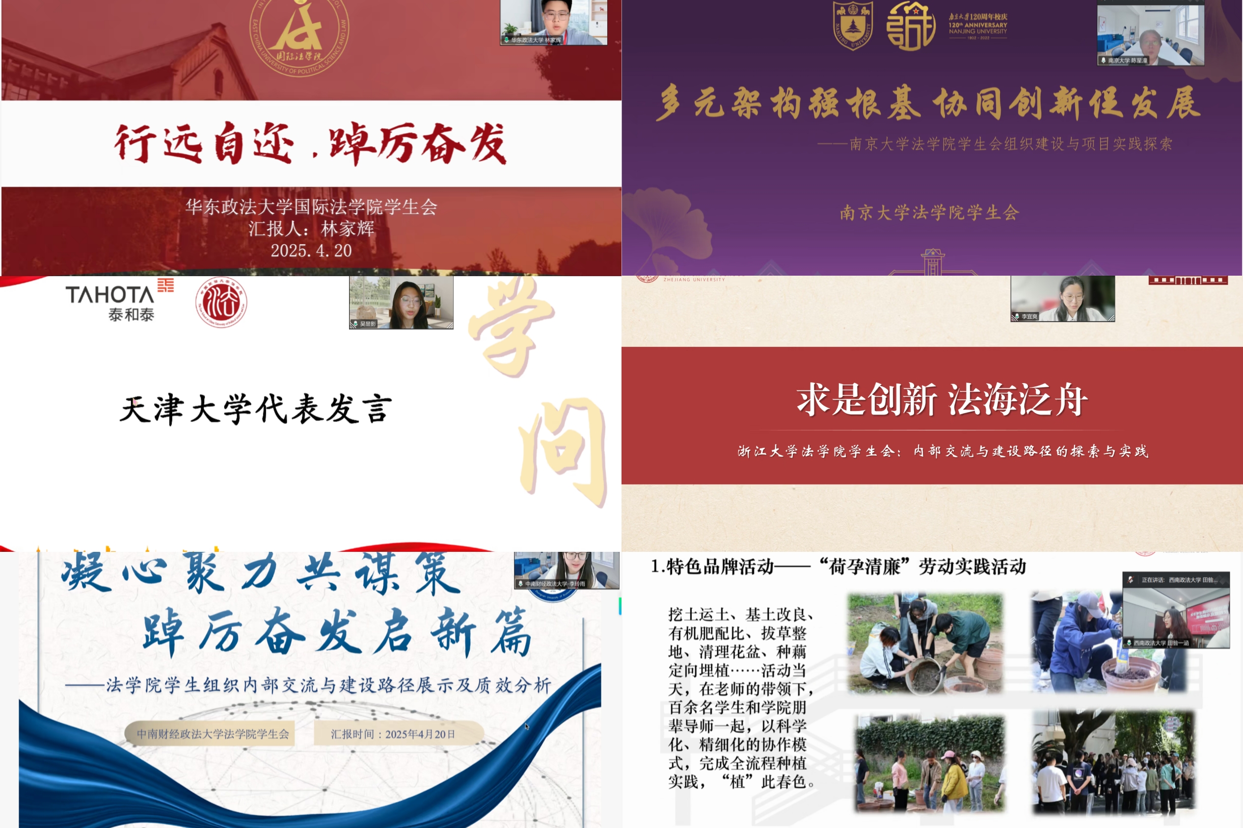 组织应当携手共进,深度共享经验、加强合作,立足服务同学的定位,共同打造充满活力与服务力的法学学生组织生态。