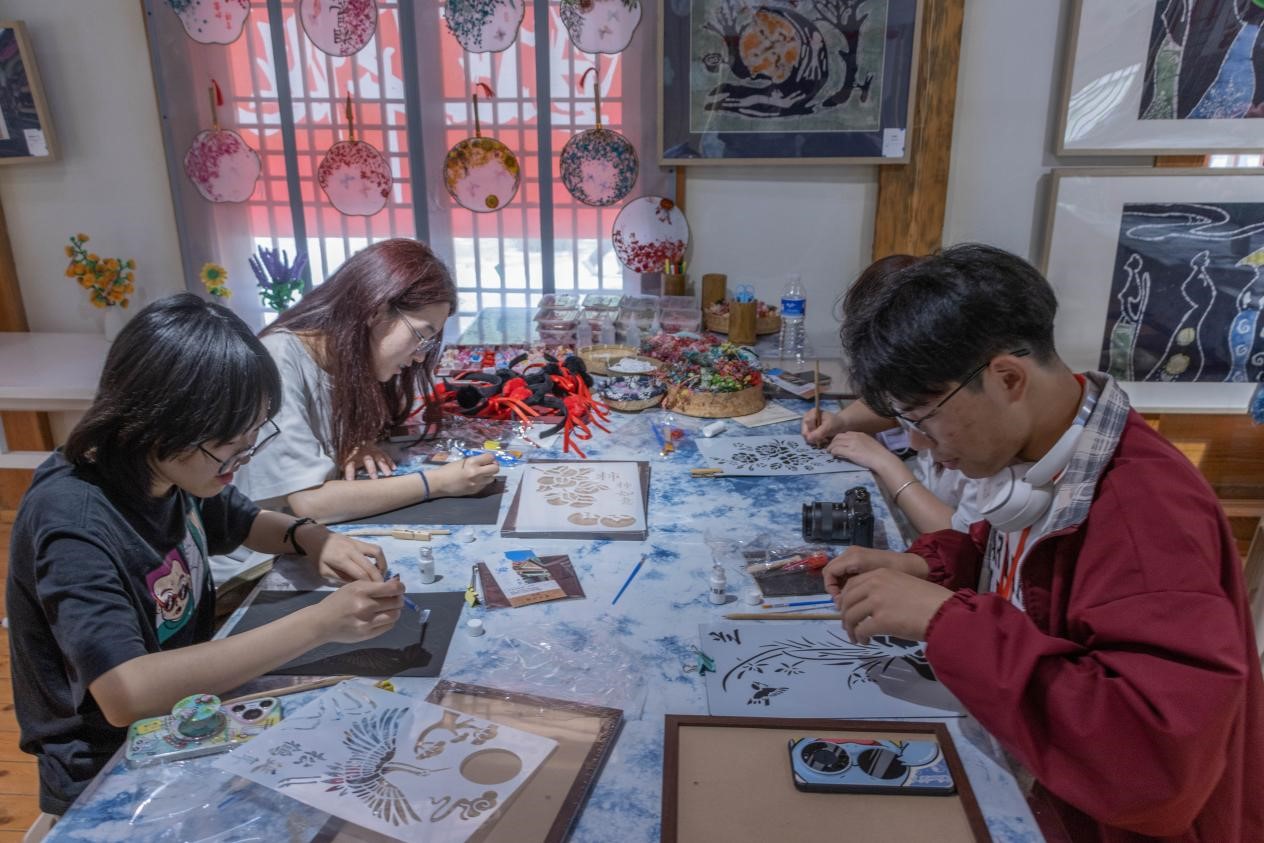 参观活动结束后,同学们分组体验了扎染、漆扇、烧金箔画、香囊等非物质文化遗产工艺制作,在制作中亲身感受了各类民族技艺的工艺流程与文化内涵。在一次次勾勒与描绘后,同学们不仅完成了自己的非遗手工艺品,也生动感受到中华优秀传统文化背后所蕴含的文化渊源、民族智慧和工匠精神,体悟了中华文明数千年生生不息的力量,深刻理解青年在中华优秀传统文化传承与创新中的责任担当。